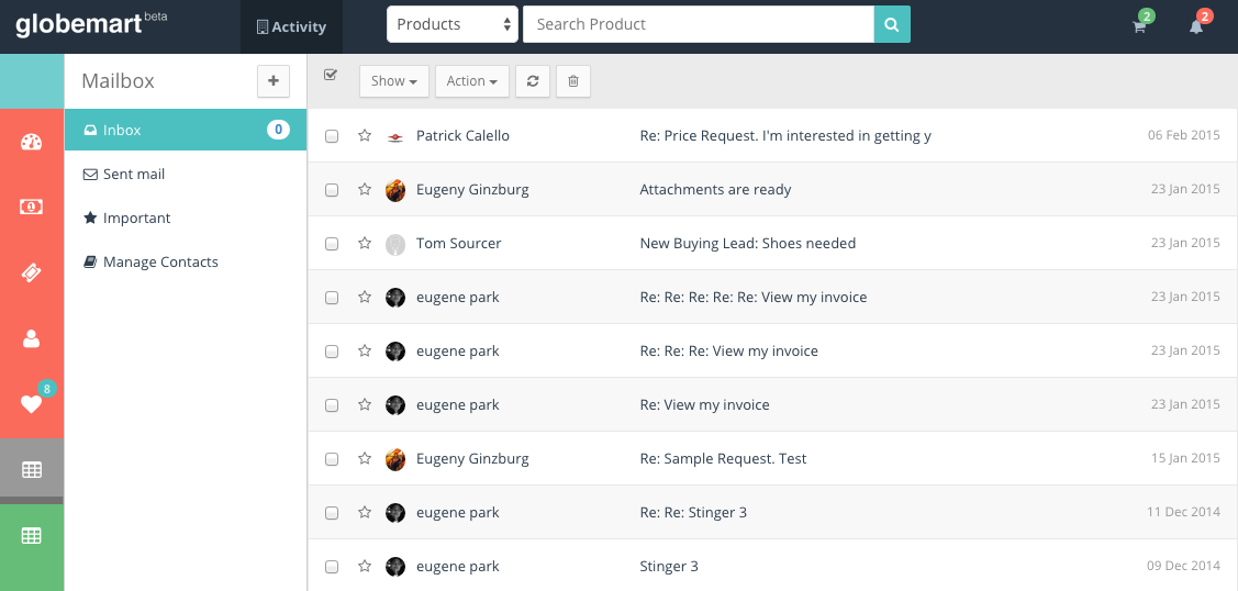 Globemart simplifies messaging to and from your vendors and customers. We developed a single, easy-to-use platform to manage your most trade-relevant contacts and communications. Send e-mail, pricelists, product updates, and anything you’d like seamlessly through our system. Everything is stored in our cloud so you can access, distribute, and get notified from anywhere your connected.