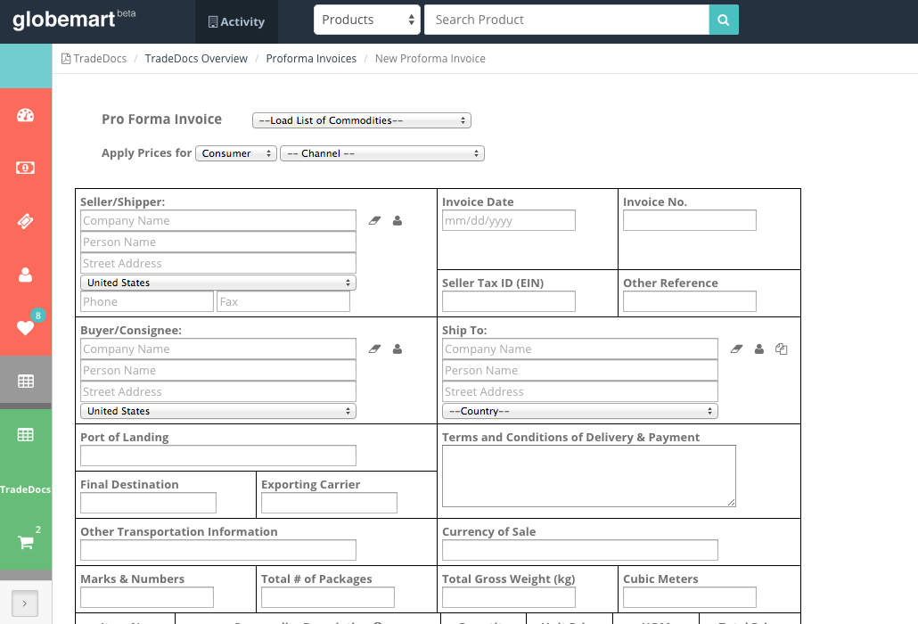 Our simple, yet robust TradeDoc invoicing management system helps to streamline the way you transact with and buy from global sellers by providing you simple-to-use form generators for purchase orders, invoices and other important trade-related documents.